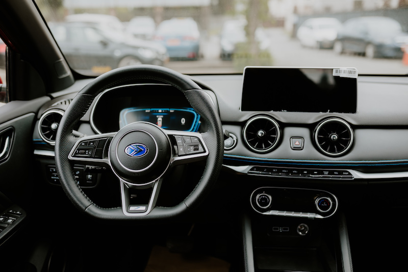 > En el interior integra materiales acolchados, amplios espacios de almacenamiento, un volante forrado en piel y asientos de cuero sintético.