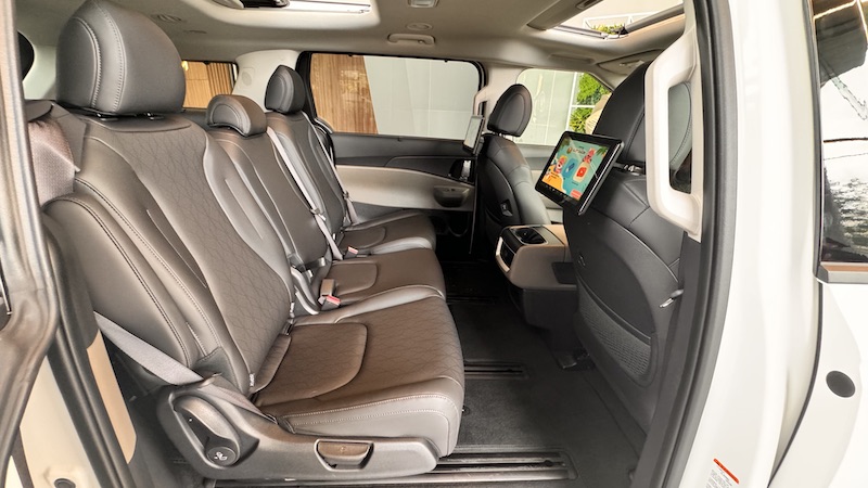 Pensando en la comodidad y funcionalidad para los ocupantes, presenta los asientos de la segunda fila con opción de girarse en 180º para quedar frente a frente con la 3ª fila. También en la segunda fila cuenta con dos pantallas de 10.3” con Netflix, y cortinillas en las ventanas de las 2ª y 3ª fila. Además, se mantienen las puertas deslizantes eléctricamente, para facilitar el ingreso.