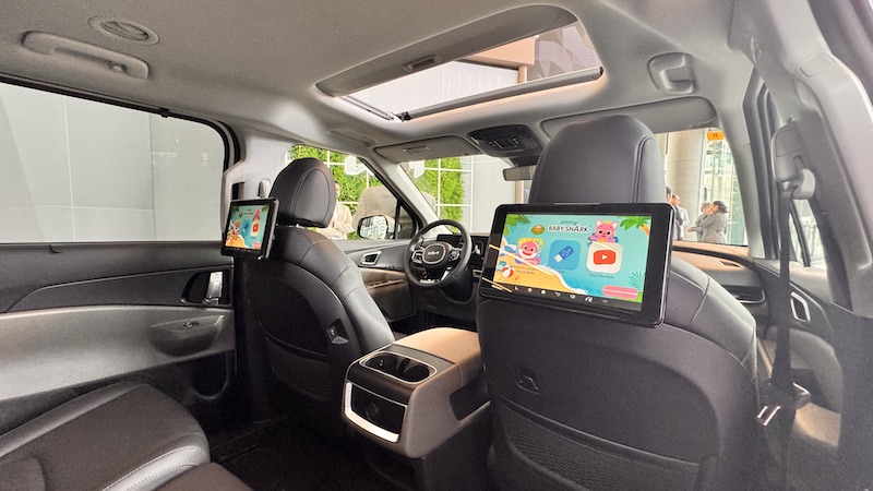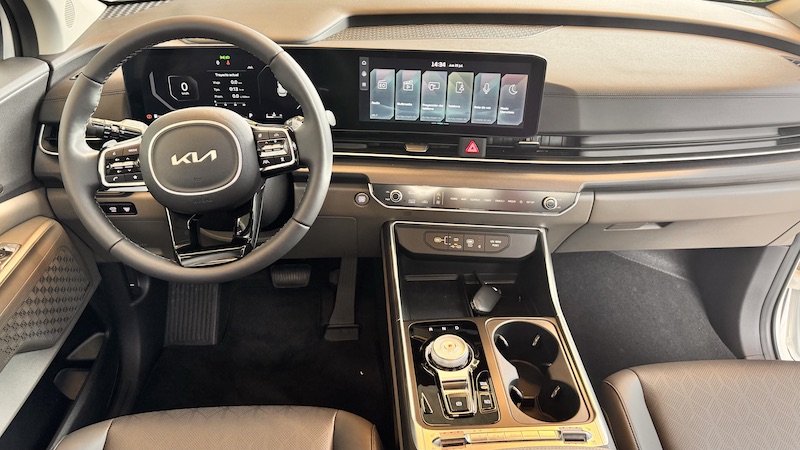 Materiales de alta calidad y un estilo minimalista es lo que encontramos en el interior del Kia Carnival. No por eso es menos tecnológico. Cuenta con un doble pantalla panorámica curva de 12.3” para el panel (según versión) y 12.3” para el sistema multimedia con interfaz Rising. Incorpora Apple Carplay y Android Auto inalámbrico, además de cargador por inducción.