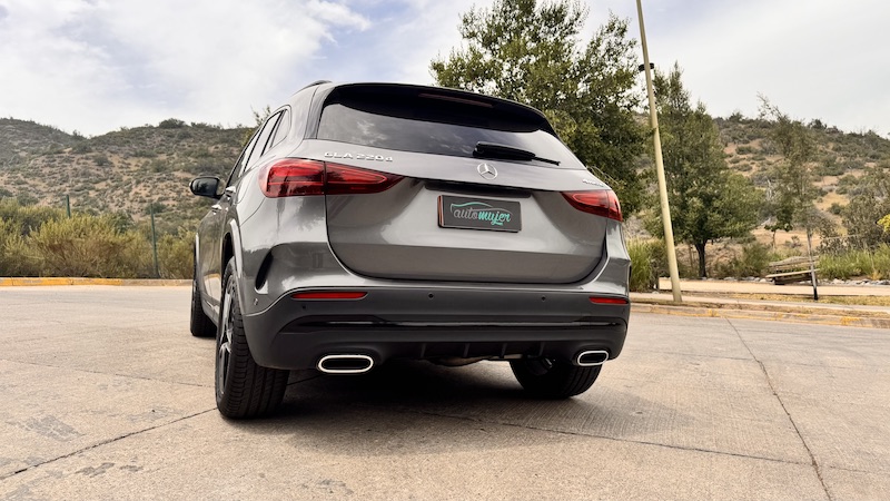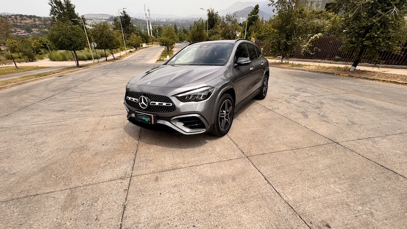 El frontal, por ejemplo, tiene la nueva identidad luminosa, las nervaduras en el capó. Además, Mercedes tiene distintas versiones para este GLA. Primero está la opción de entrada llamada Progressive y la que nos tocó manejar, con un look AMG, que es distinta. Pero ojo, no es un AMG, tiene el look AMG, con una onda estética un poquitito más deportiva, con una con detalles cromados, de estilo diamantado, lo mismo la barra cromada que le entrega una imagen más ruda.