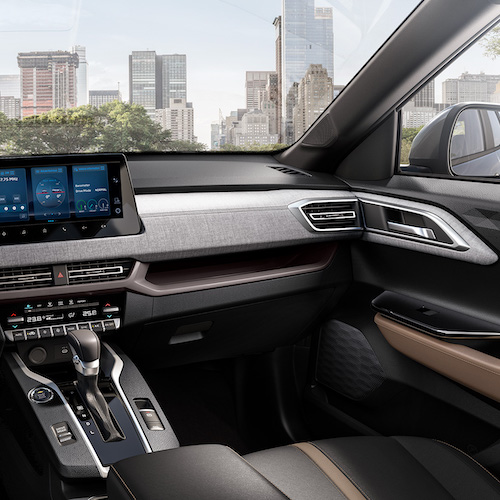 Contempla pantalla centra que puede ser de 8” o 12.3”, con Carplay y Android, mientras que el tablero de instrumentos puede ser de 4.2” u 8”. Cuenta con climatizador dual (excepto versión de entrada), tapiz de tela o ecocuero, volante regulable en altura y profundidad, entre otros elementos.